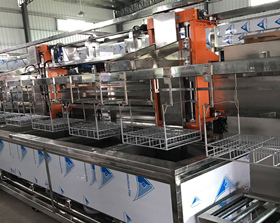 全自動(dòng)六槽超聲波清洗機(jī)工作原理: 全自動(dòng)六槽超聲波清洗機(jī)原理主要是將換能器,將功率超聲頻源的聲能,并且...